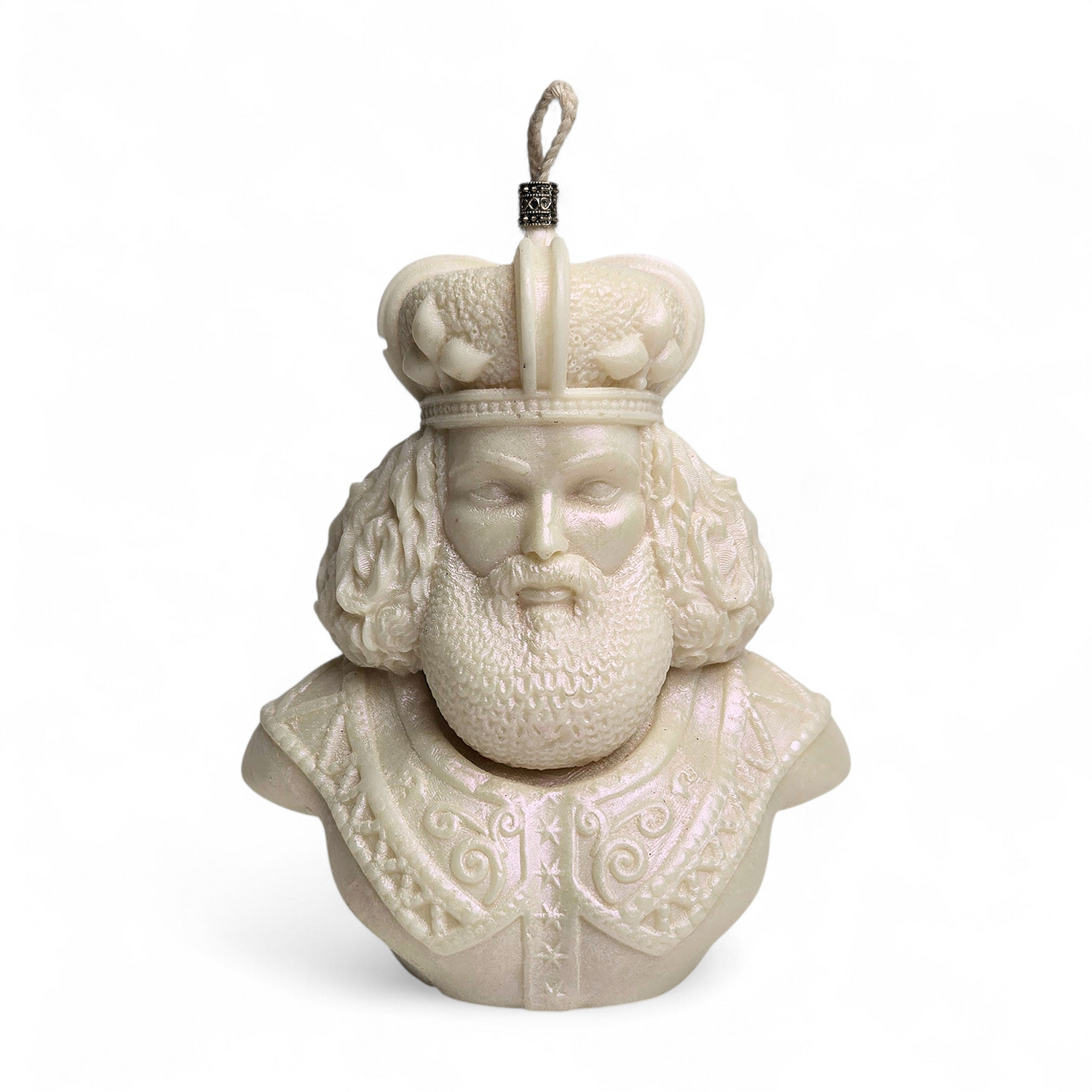 Geef je interieur een koninklijke uitstraling met deze handgemaakte koningsbuste kaars.