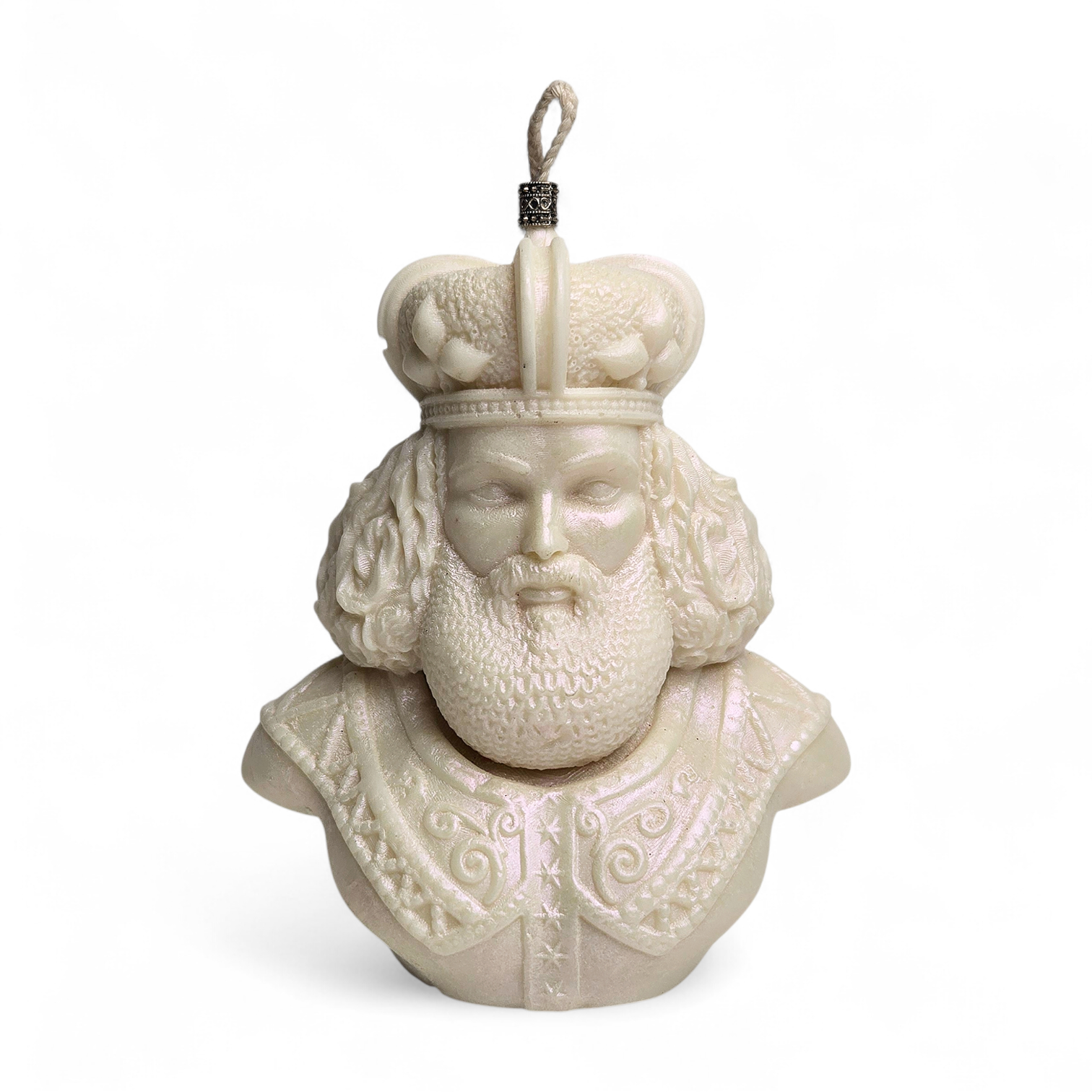 Geef je interieur een koninklijke uitstraling met deze handgemaakte koningsbuste kaars. De kaars is ontworpen als een gedetailleerde koning met kroon, baard en klassiek harnas. Dankzij het hoogwaardige materiaal en de fijne details is deze kaars niet alleen een sfeermaker wanneer hij brandt, maar ook een prachtig decorstuk op zichzelf.
